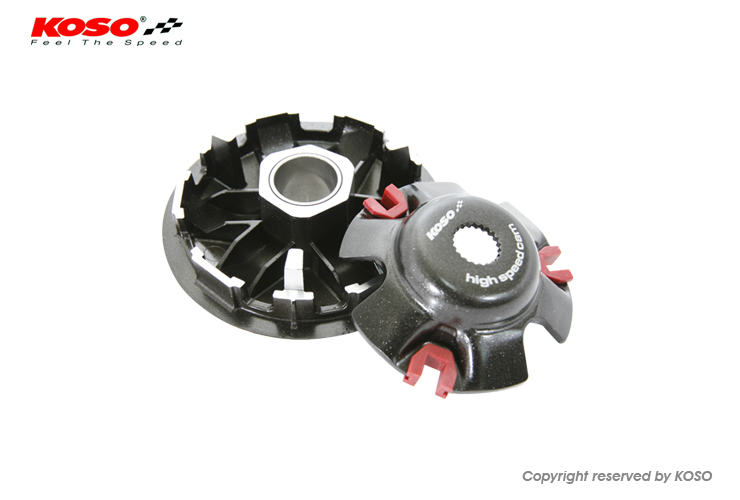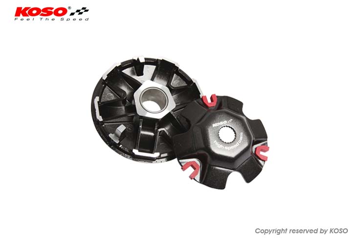 1. 最佳化外型及整體重量設計,益於驅動且散熱及有效輕量化。2. 廣域變速範圍,增加低速扭力及增加最高速變速範圍。3. 最佳化滾珠溝槽曲線設計,有效改善加速時間,並且不過度流失引擎扭力值。4. 建議最佳滾珠重量7gX6,進行車輛調整。